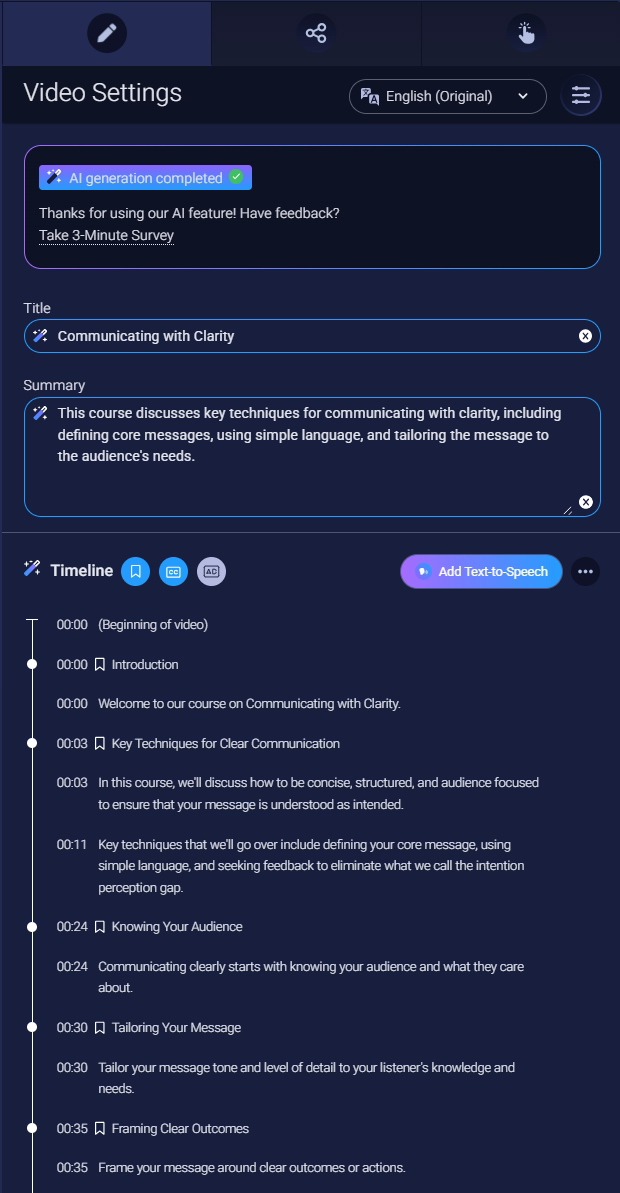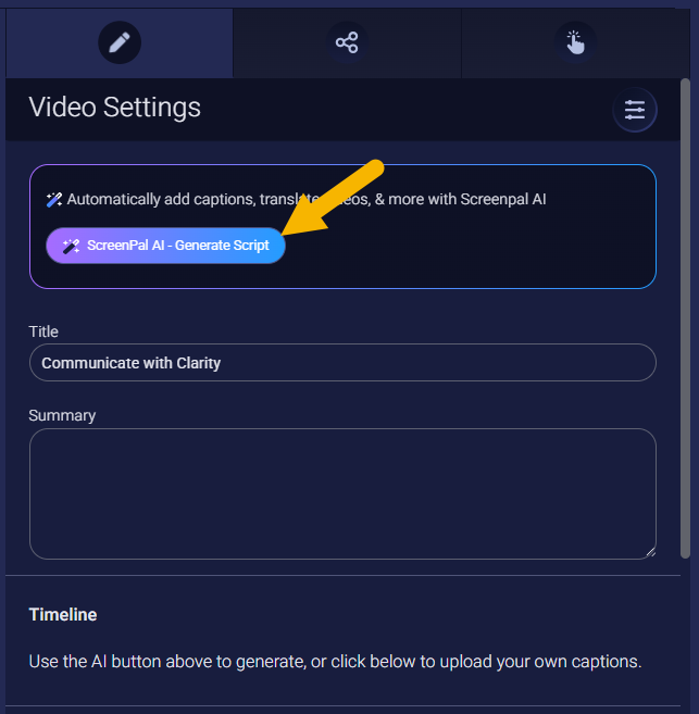 If you have access to our AI feature, you can quickly add chapters to your video (as well as a video title, summary, and captions) using the ScreenPal AI tool.