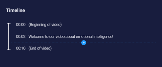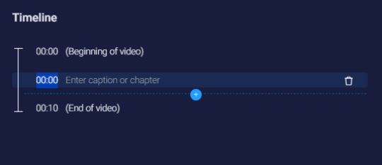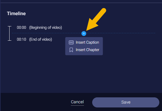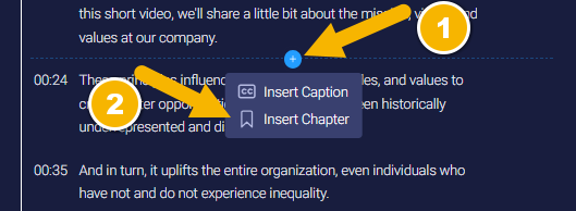 2. After you upload captions, you can insert a chapter anywhere you like by hovering over the Timeline, clicking the blue plus icon, and selecting Insert Chapter.