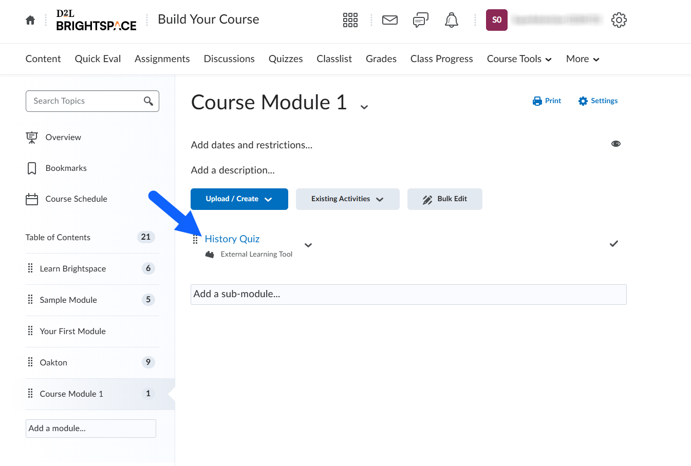 5. From the Insert Quicklink dialog, click External Learning Tools.