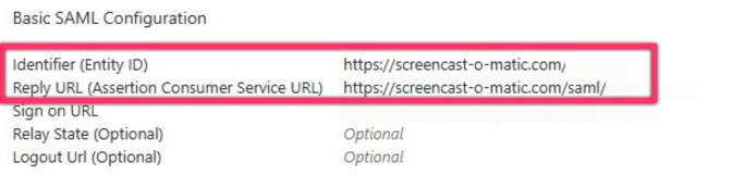 When you're finished, Identifier (Entity ID) and Reply URL (Assertion Consumer Service URL) should be populated with the correct values: