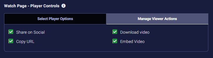 To customize the viewing experience for your audience, determine which player options and viewer actions are available.
