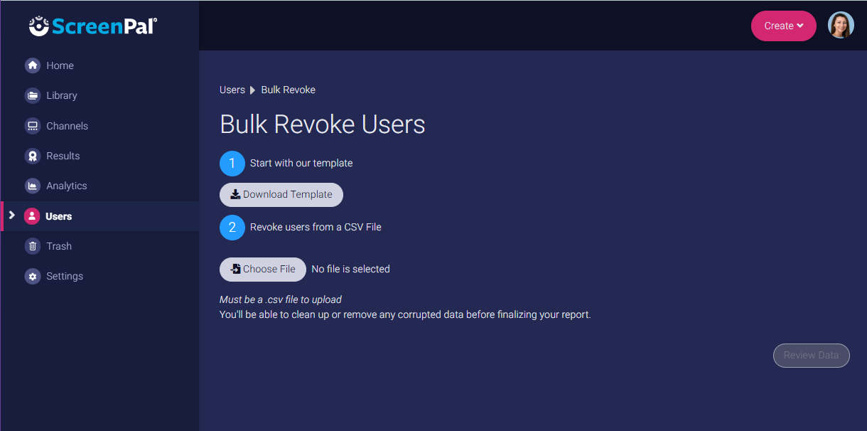 4. Create your CSV file and upload it to ScreenPal.  Then click Review Data.
