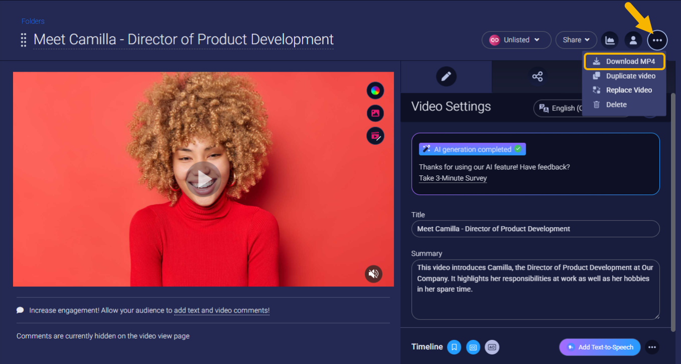 Download MP4 to save the video to your computer.