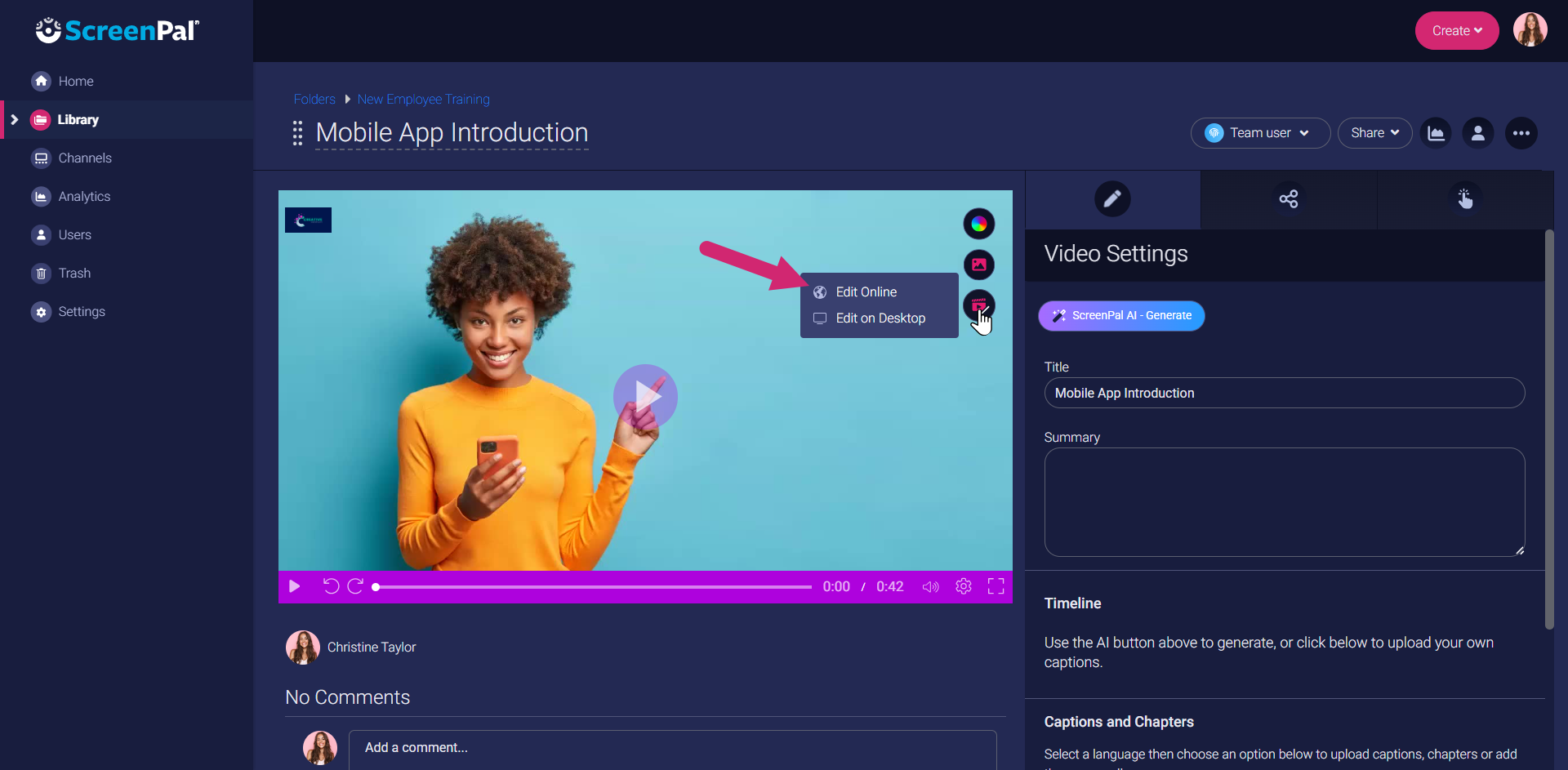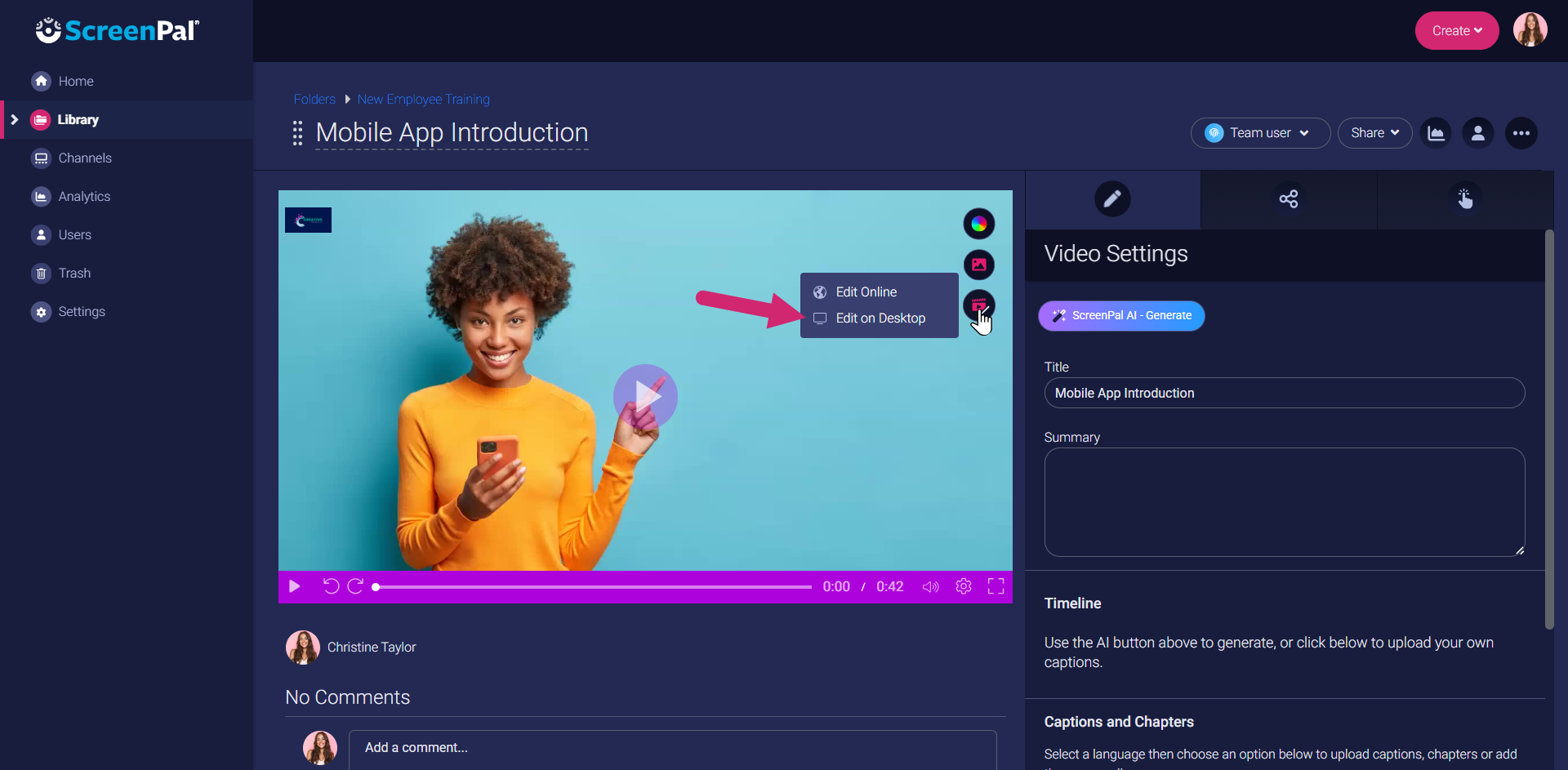 Edit the uploaded video from your ScreenPal Hosting account by sending it to the desktop Video Editor.