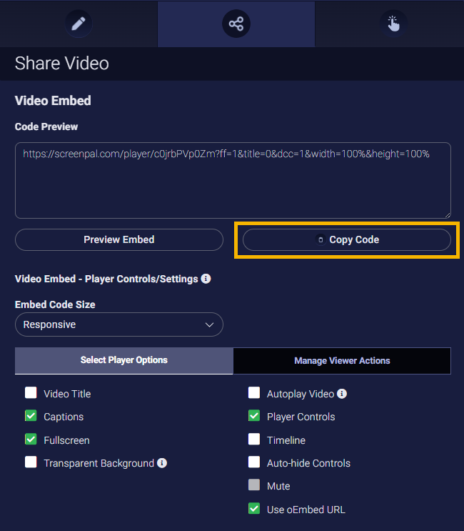 6. Finally, click Copy Code under Code Preview to copy the oEmbed URL to use in WordPress.