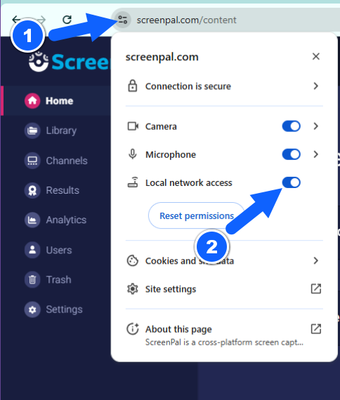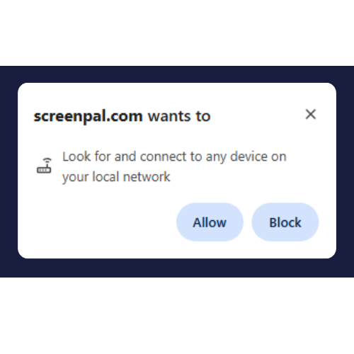 The Local Network Access permission prompt launched in Chrome 142. With this update, you will see a new permission prompt when you launch one of the ScreenPal Desktop apps from Chrome: