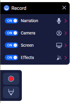 2. The ScreenPal extension controls will open. You will see options to record your screen and camera.