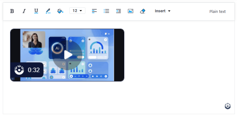 When you click the green check icon, ScreenPal creates a link or video thumbnail in the location where you initiated the screen recording by clicking the ScreenPal extension icon.