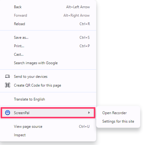 You can also right-click a webpage in an area outside of a text box, for quick access to ScreenPal:
