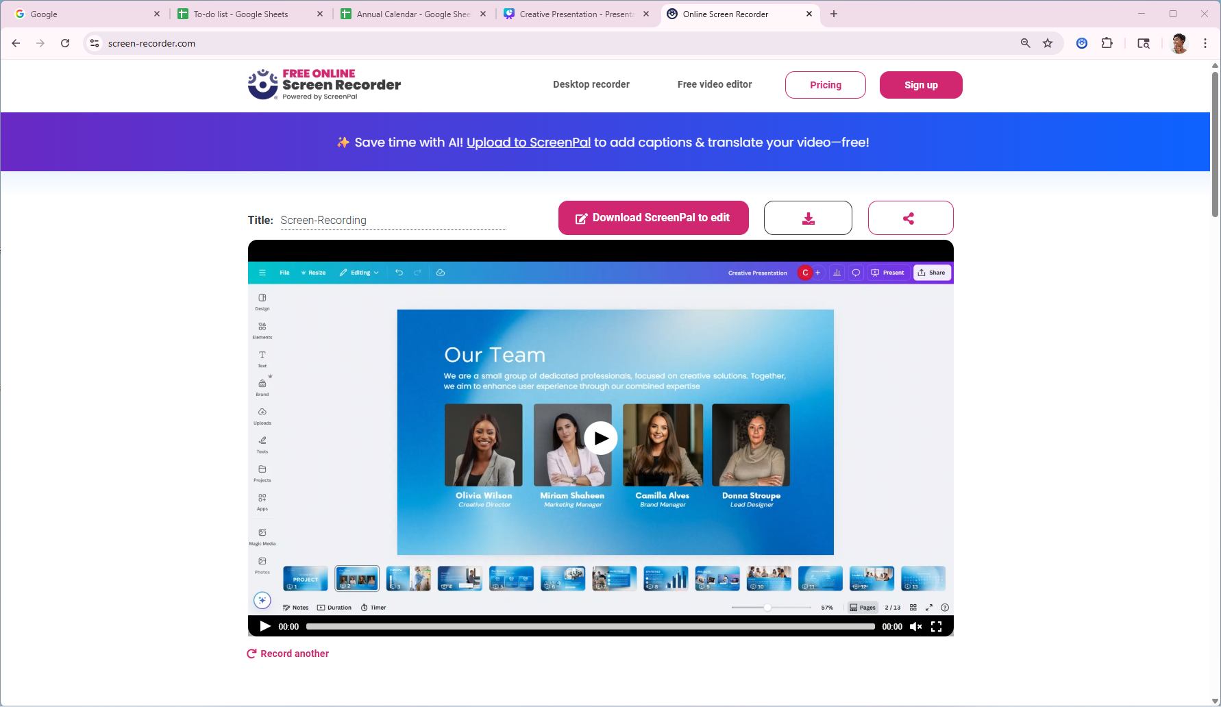 Use ScreenPal's online Screen Recorder to capture high-quality videos for free. You can record your screen, webcam, and voice and instantly save these recordings to your computer.