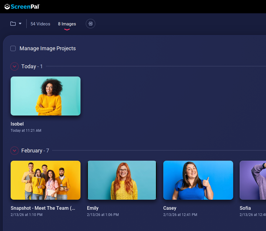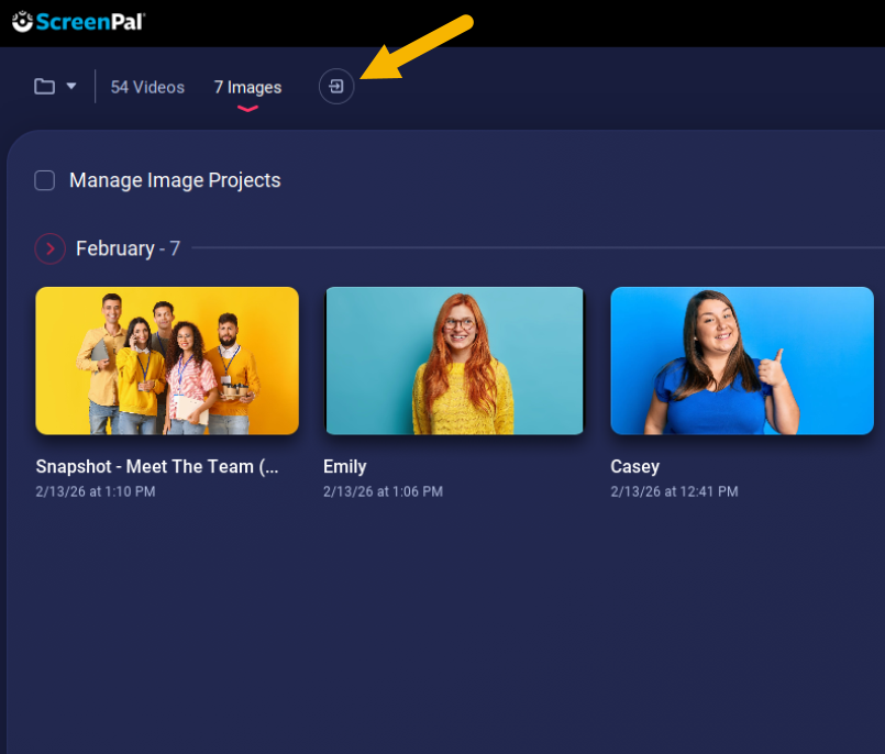 1. Log into your ScreenPal account and select Images from the menu in the top left.