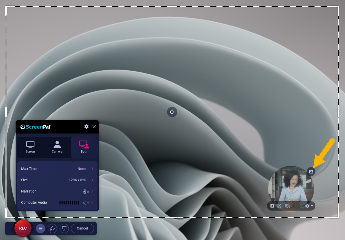 When you use ScreenPal's Screen Recorder to record your screen and webcam together, you can easily customize the appearance of your webcam. Begin by opening the Screen Recorder and click Both. This displays your webcam preview. To change the shape of ...